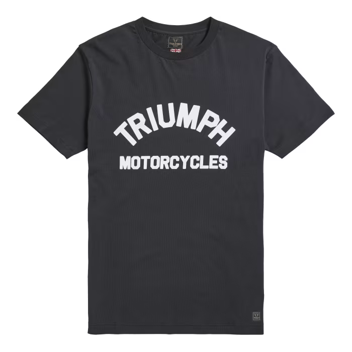 - Iconic Branding: Features the Triumph Motorcycles arched logo in a soft pigment bright white print across the chest.