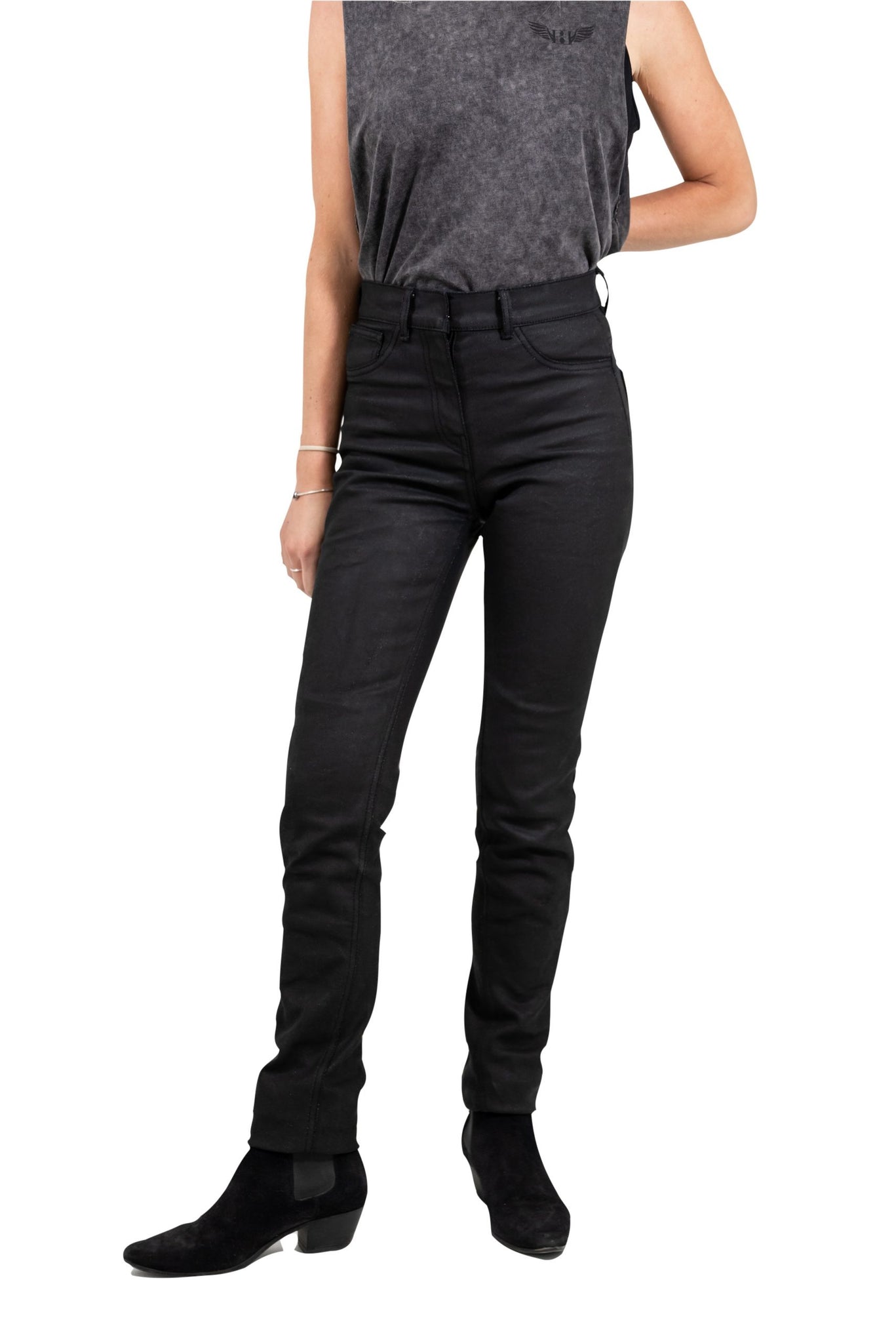 The Venus women's motorcycle jeans are available in sizes from EU24/AU6 to EU36/18. The wax look denim has less stretch than standard stretch denim - it is recommended to go up one size.
